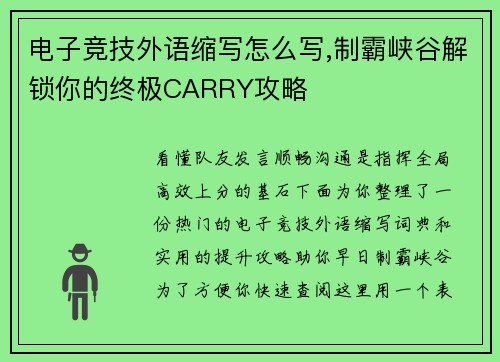 第一部分:电子竞技比赛是什么意思? 简单来说,电子竞技比赛就是一项以电子游戏为载体的、高度组织化的智力与体力结合的对抗性运动。 我们可以把它拆解来理解: 1. 核心是“体育竞赛”: * 它和传统的篮球...